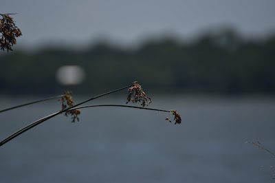 On the banks of the river are several types of plants. There is tall grass, small trees, and these plants. I wanted to take pictures of these plants because they are very simplistic with flowers only on the ends. I also admire how the trees and water in the background are blurred but still recognizable.